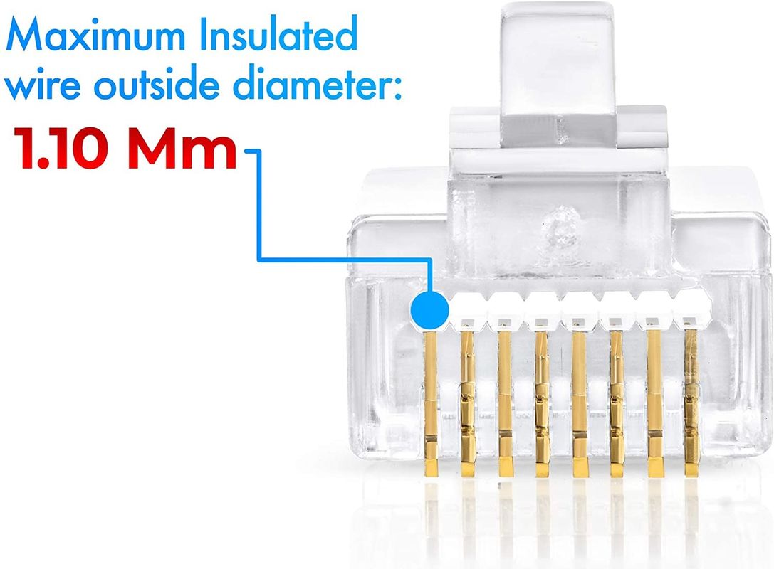 * حداکثر سیم عایق بندی شده OD (قطر خارج) 1.1 میلی متر است ، از کابل 23-24 AWG STRANDED و SOLID CAT6 پشتیبانی می کند.