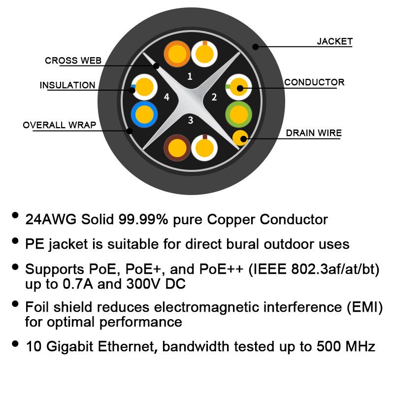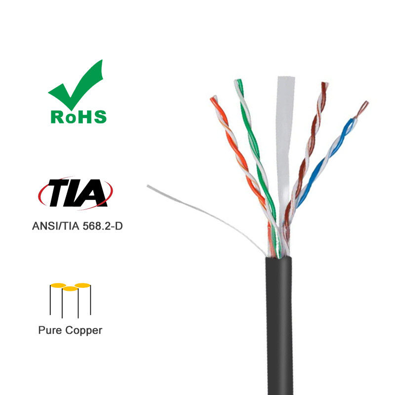 Cat6 UTP در فضای باز مقاوم در برابر اشعه ماورا بنفش سیاه و سفید ضد آب 22 23 24 AWG شبکه خالص Copepr کابل شبکه اترنت فله 100 متر 305 متر جعبه